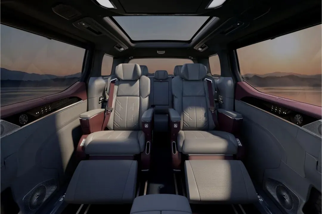 座舱:七座版二排新增双零重力座椅,支持45°(方便进出)、90°(观景)、180°(对坐)多角度旋转,适配家庭互动、商务会议等多场景需求;三排座椅标配通风/加热/电动调节,三排新增四向电动调节与独立空调,搭配22点位按摩功能;还有17英寸中央吸顶屏、极氪9X同款英国Naim音响、怀挡设计、水晶旋钮、竖琴饰板、星雨环绕氛围灯等;