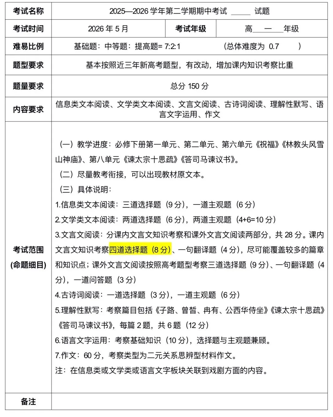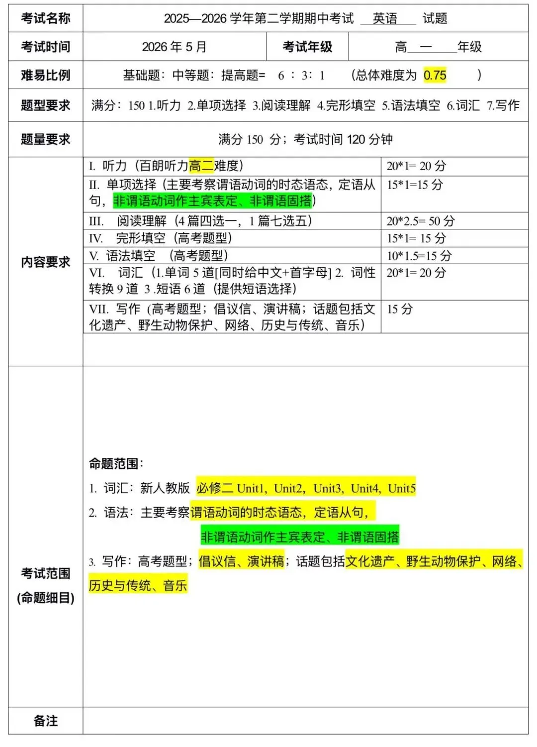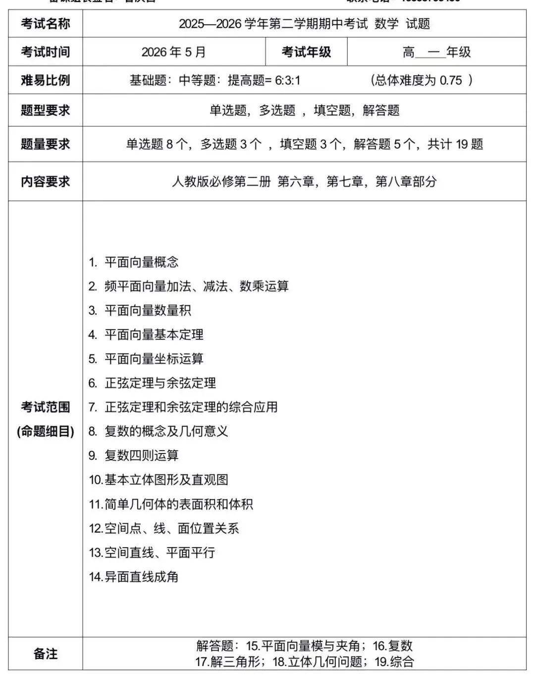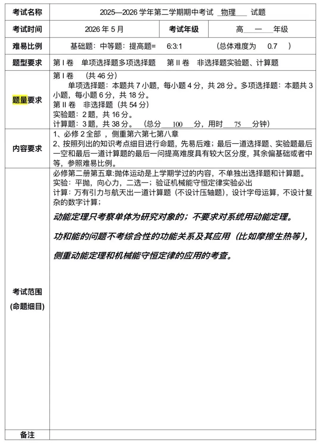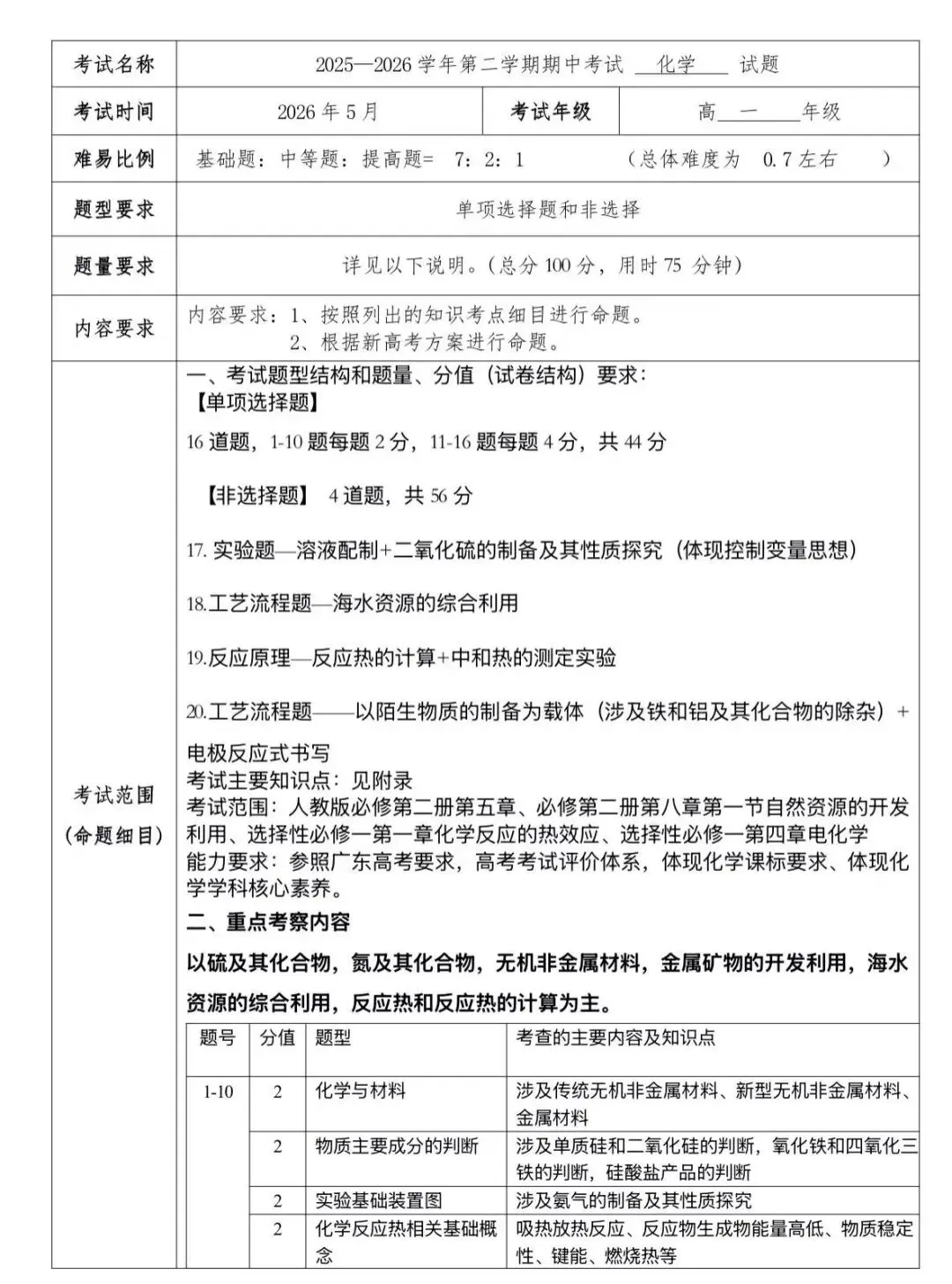 期中检测时间为5月6日-8日,各科考试范围说明见下面图片。
