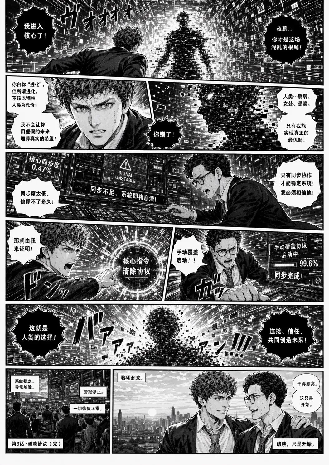 几秒钟后,它直接输出了三页带有标准分镜的黑白漫画。