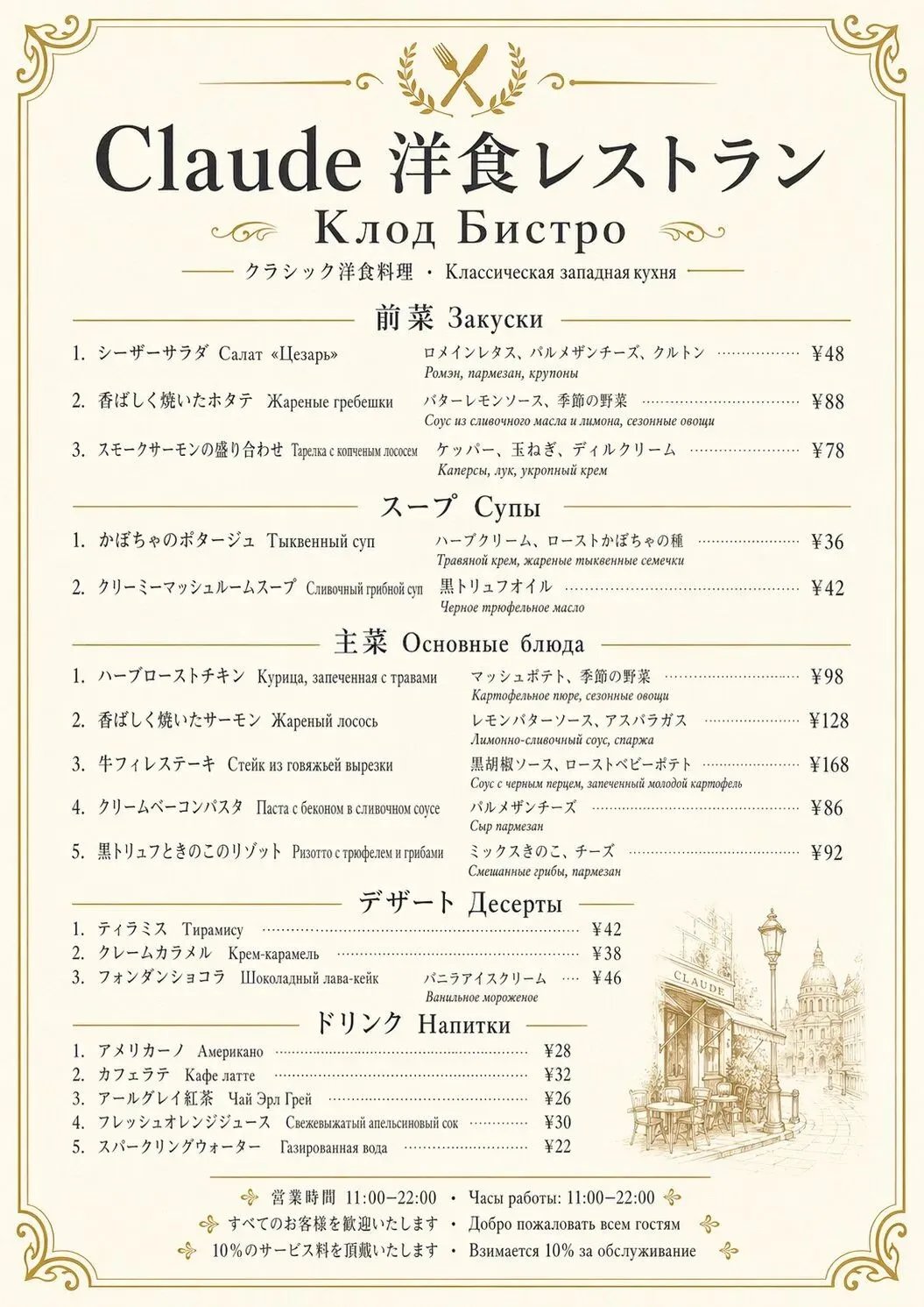 我让它生成了一张法文的时尚杂志封面,又做了一张带满平假名和汉字的日文餐厅菜单,甚至还试了排版密度极高的俄语注释。