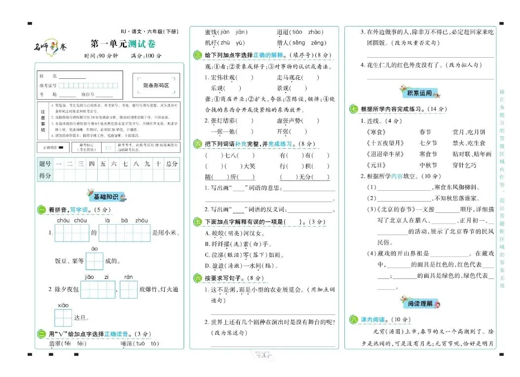《名师彩卷》人教版语文1-6年级下册丨pdf电子版,可下载打印,链接:https://pan.quark.cn/s/14c806ce1aa2