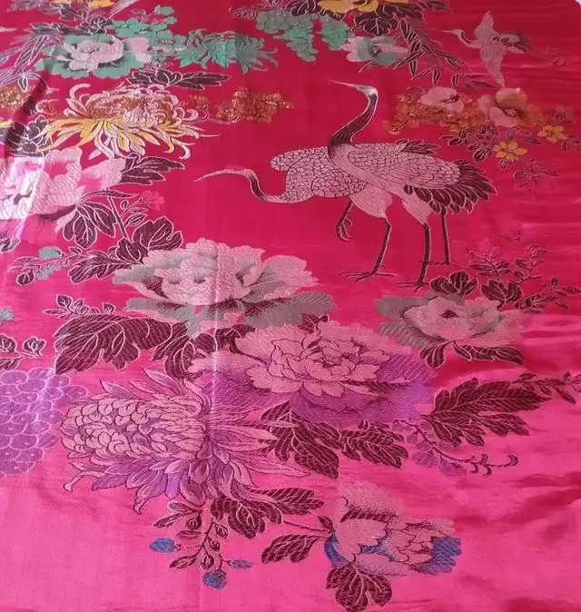 这个大红底、花鸟争艳的,老物件里头大名鼎鼎的吉祥花被,以前谁家结婚、添人进口就要新做一床,图案越大越艳才显气派,冬天铺出来满屋都是喜气,有人专门夹叠存柜底,说等小孙子结婚接着用,真要养眼,经年不褪色。