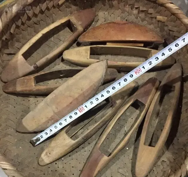 筐子里这些长条型木头,叫织布梭,拉线过纬用的,妇女们一坐下踩上织布机,梭子刷地在经线上跑,一来回听见咔哒咔哒响,手感滑溜溜的,小时候往往偷偷拿梭子玩过家家,被妈发现追着撵一圈,说别敲坏了家里穿的衣服可就难打发了。