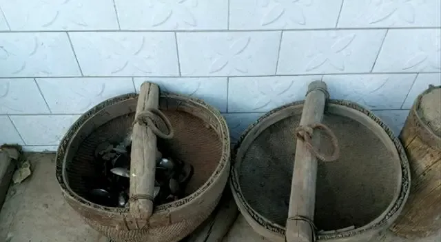 门口这两只圆筐,中间横着木棒,一肩一只正好挑着走,装菜装鸡蛋往集市跑一趟回来,筐边竹篾都毛糙起来了,有的地方配上布带,挑久了肩头勒出红印,青年们现在要搬家,可能还不如这家伙顺手结实。
