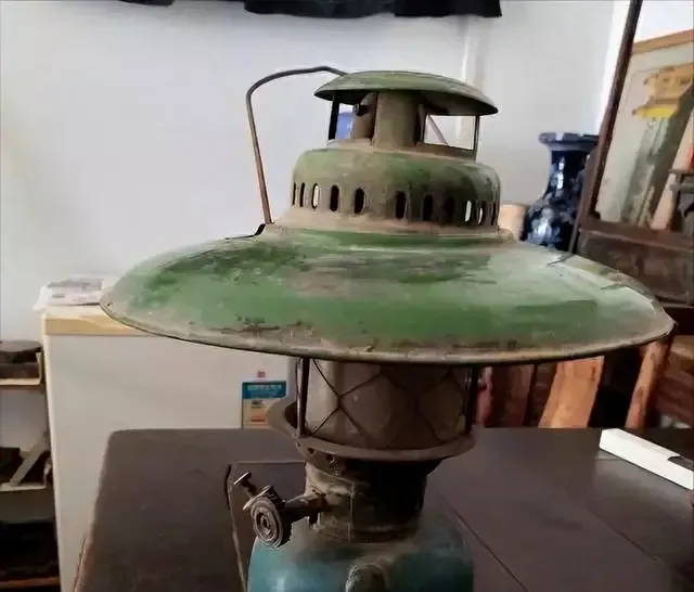 这盏绿色煤油灯,大肚子铁壳,玻璃罩压上,点着时油火味四散开,屋里照得朦胧黄亮,桌上一圈家人凑着吃饭,停电天黑,家里马上点上这灯,谁写作业就挤在前头,光亮够用,人气也就聚过来了。