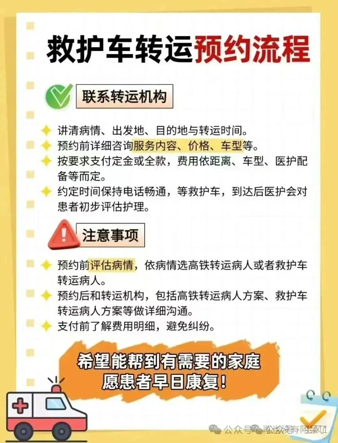 ★ 医疗设备齐全,车辆定期消毒