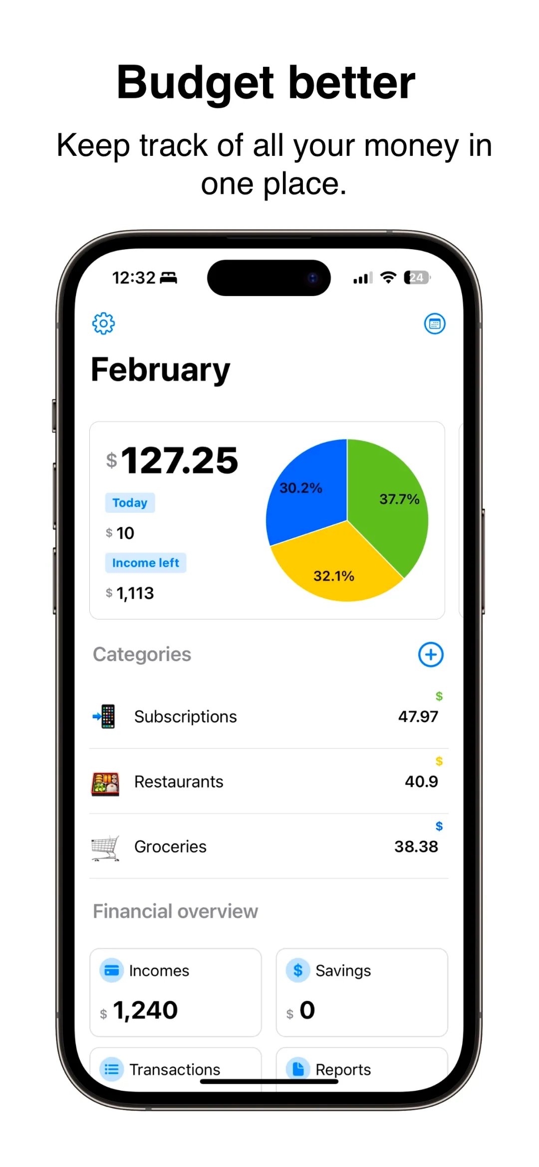 强大的支出洞察:按类别分析并生成详细图表;追踪现金、银行卡等多种交易方式;按日/周/自定义时间筛选;月度报告发现趋势和省钱机会;全时间线分析财务历史。
