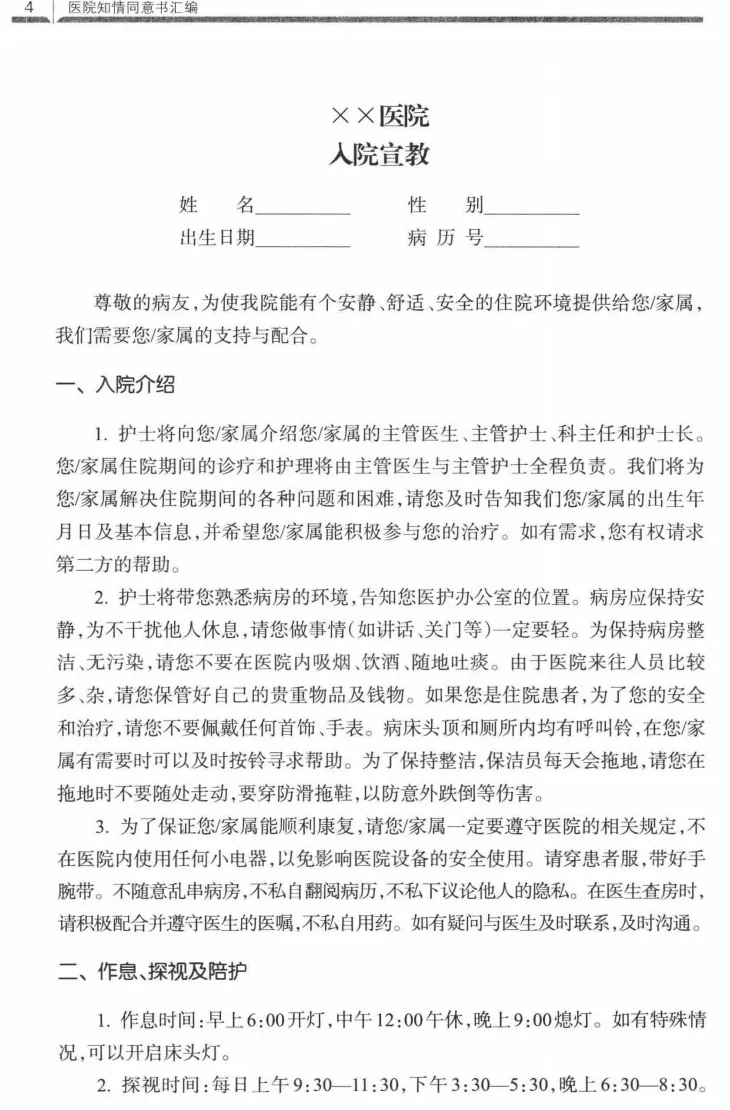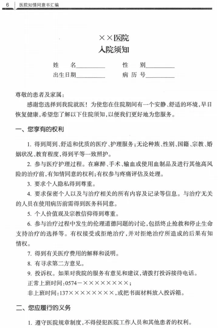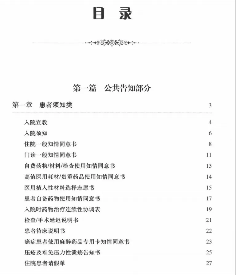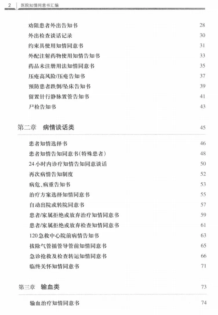 医院知情同意书汇编-浙江大学版|PDF电子版分享 资料来源“全国医务质控主任之家交流群”,仅作交流分享使用,如有侵权请联系小助手删除。 推荐阅读 1、分享|XXX医院医疗质量管理简报 2、医院科室一级质控实施方案(完整版) 3、医疗质量与安全管理委员会会议模板 4、医院医疗质量管理三级管理体系方案(详解) 5、XX三级医院质量简报(20XX年第三季度)|79页完整分享 6、XX医院医疗质量持续改进记录本模板 更多精彩文章请关注本公众号或查看:https://www.dghfrj.com.cn/