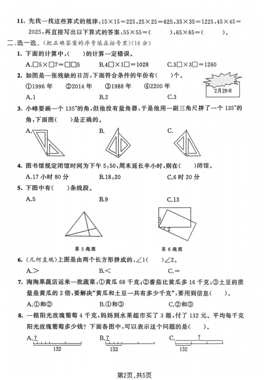 2025-2026学年青岛63版三年级下册数学期中真题质量检测卷及答案(5套)完整可打印!