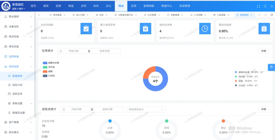包含工单报修、保洁巡检、安保管理等功能,实现物业运维闭环,提升物业服务质量。