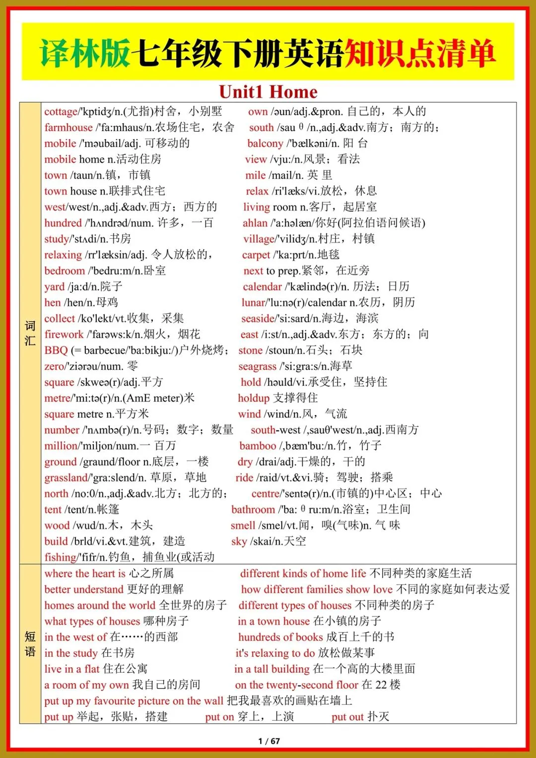 今日分享:2026新(译林版)七年级下学期《英语》全册知识点总结清单,电子版可下载打印!