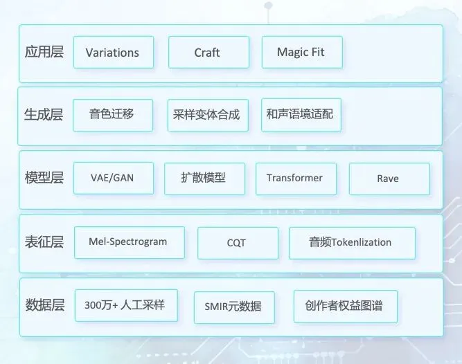 Splice 的三款工具(Variations、Craft、Magic Fit)建立在一套分层式音频智能系统之上: