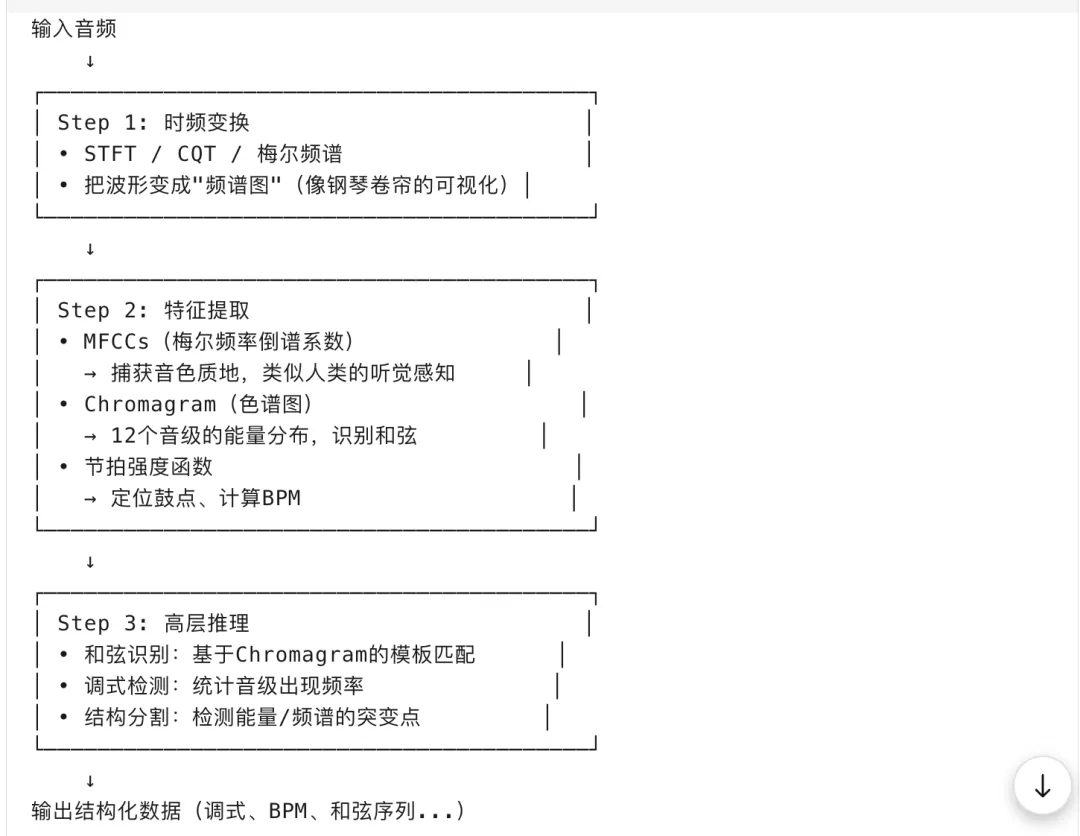 Music Information Retrieval,简单说就是“让计算机听懂音乐”的技术。不是播放音频,而是理解其中的音乐元素。