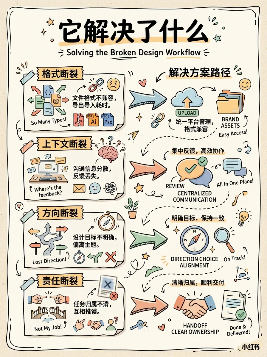 我会把这件事看得更重一些。因为设计里真正耗人的,常常不是第一张图,而是后面那一长串继续改、继续讲、继续交付的动作。