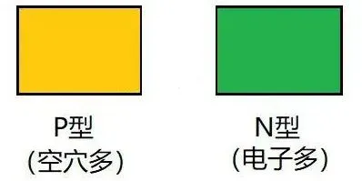 假设有一块P型半导体(用黄色代表空穴多)和一块N型半导体(用绿色代表电子多),它们自然状态下分别都是电中性的,即不带电。如图2所示。