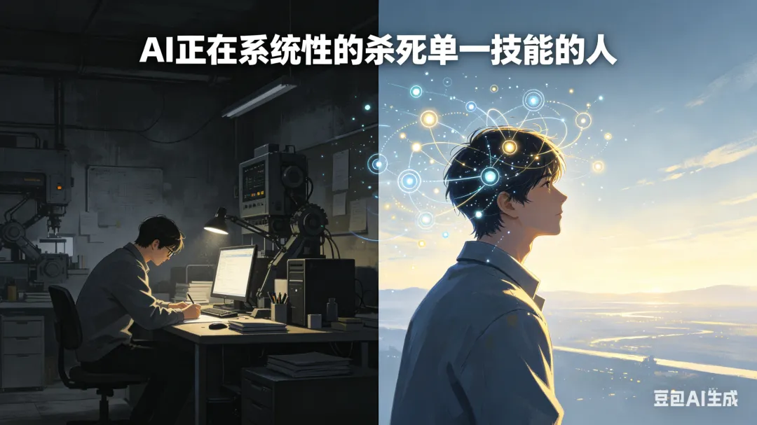 更残酷的真相是:AI正在系统性地消灭所有单一技能的价值,只会一件事的人,正在被时代慢慢淘汰。