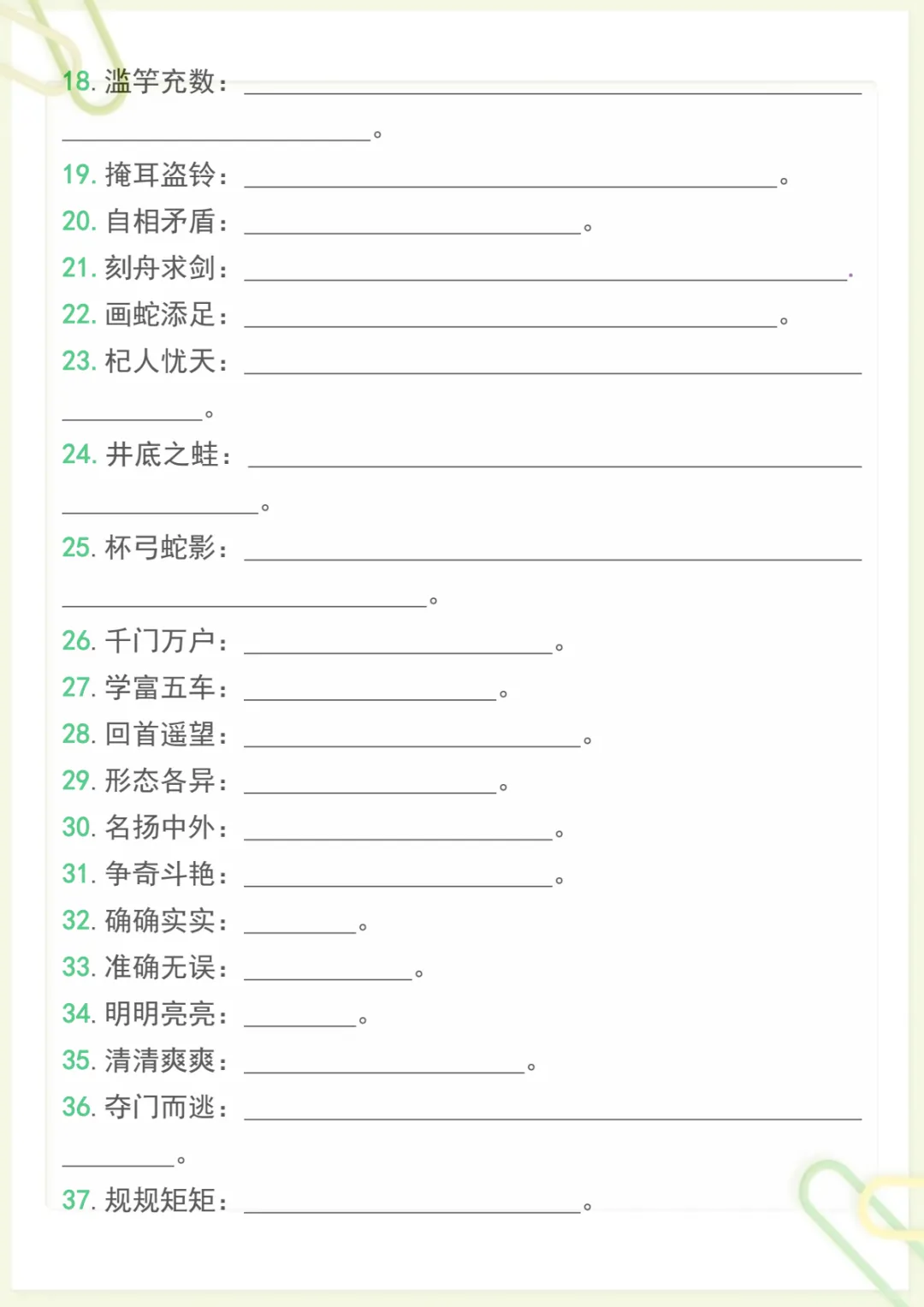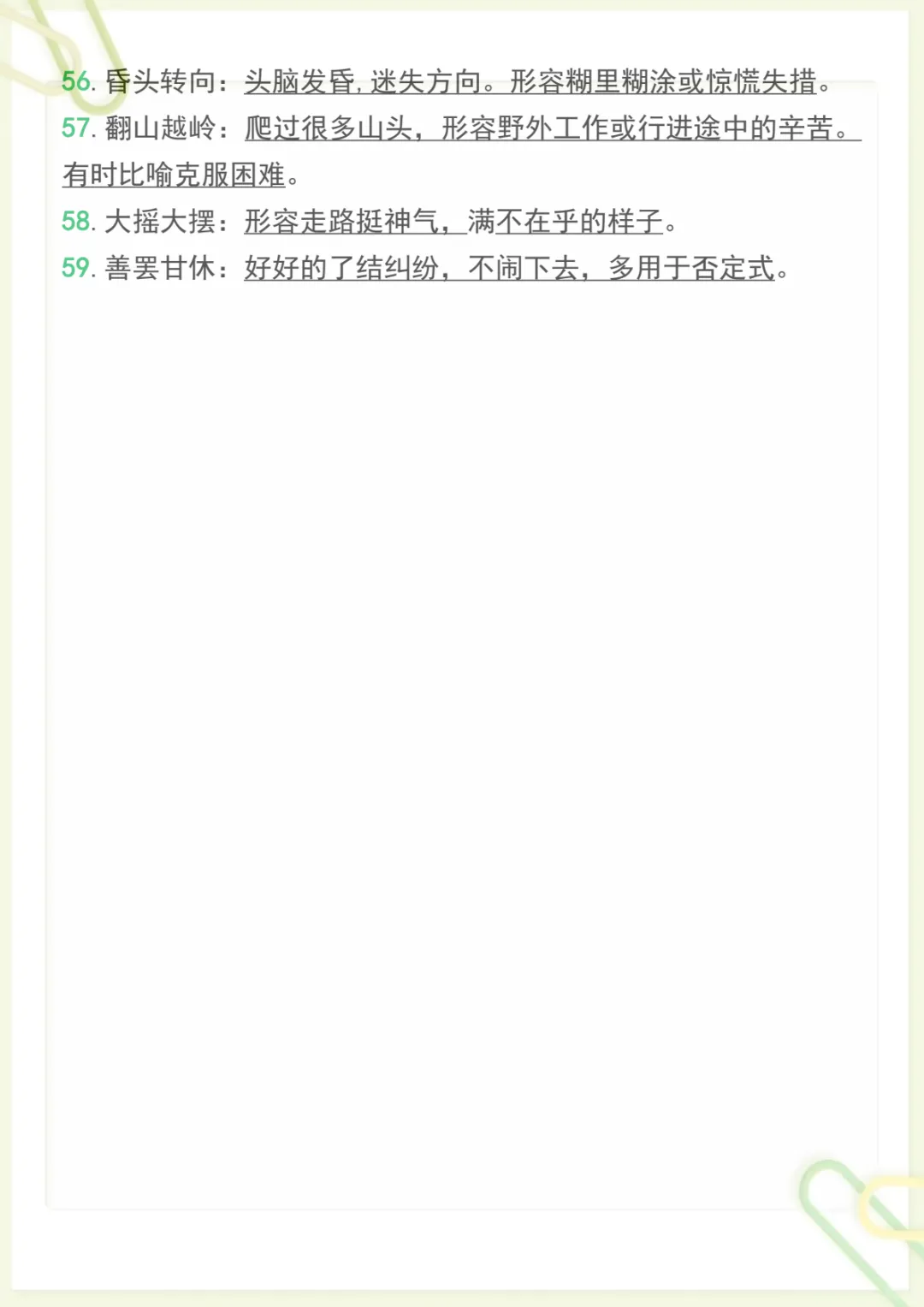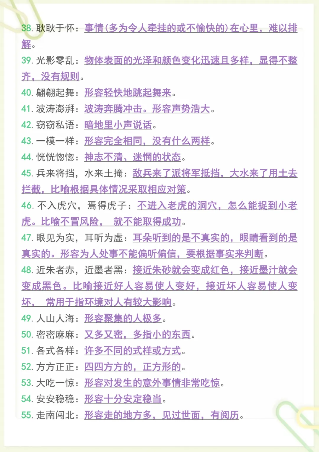 三年级下语文必备重点成语归纳带释义,共7页,电子版可下载可打印,这份资料围绕三年级下册语文学习中的常见重点成语进行系统整理,包含成语积累、含义理解与释义记忆等内容,帮助孩子在日常学习中更好地掌握词语运用,夯实语文基础,提升阅读理解和表达能力。需要的家长可以尽快下载打印出来,让孩子随时学一学、记一记。