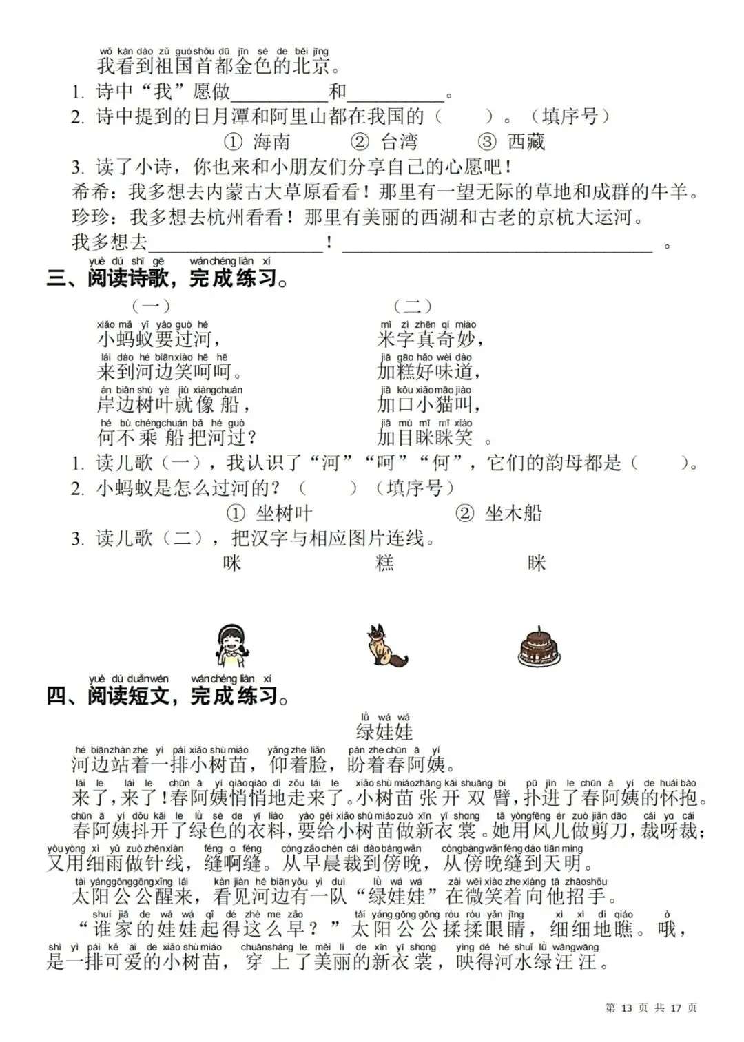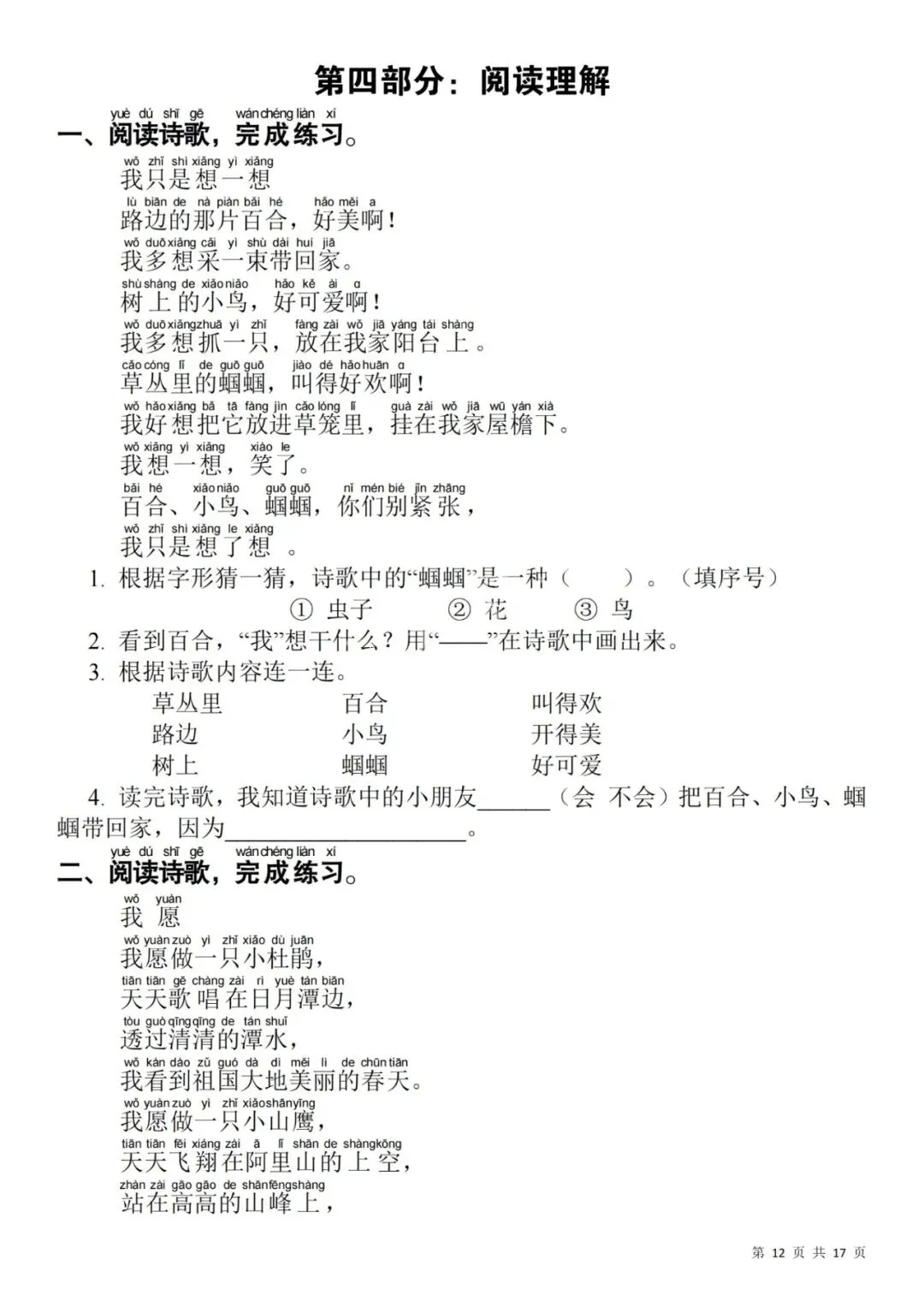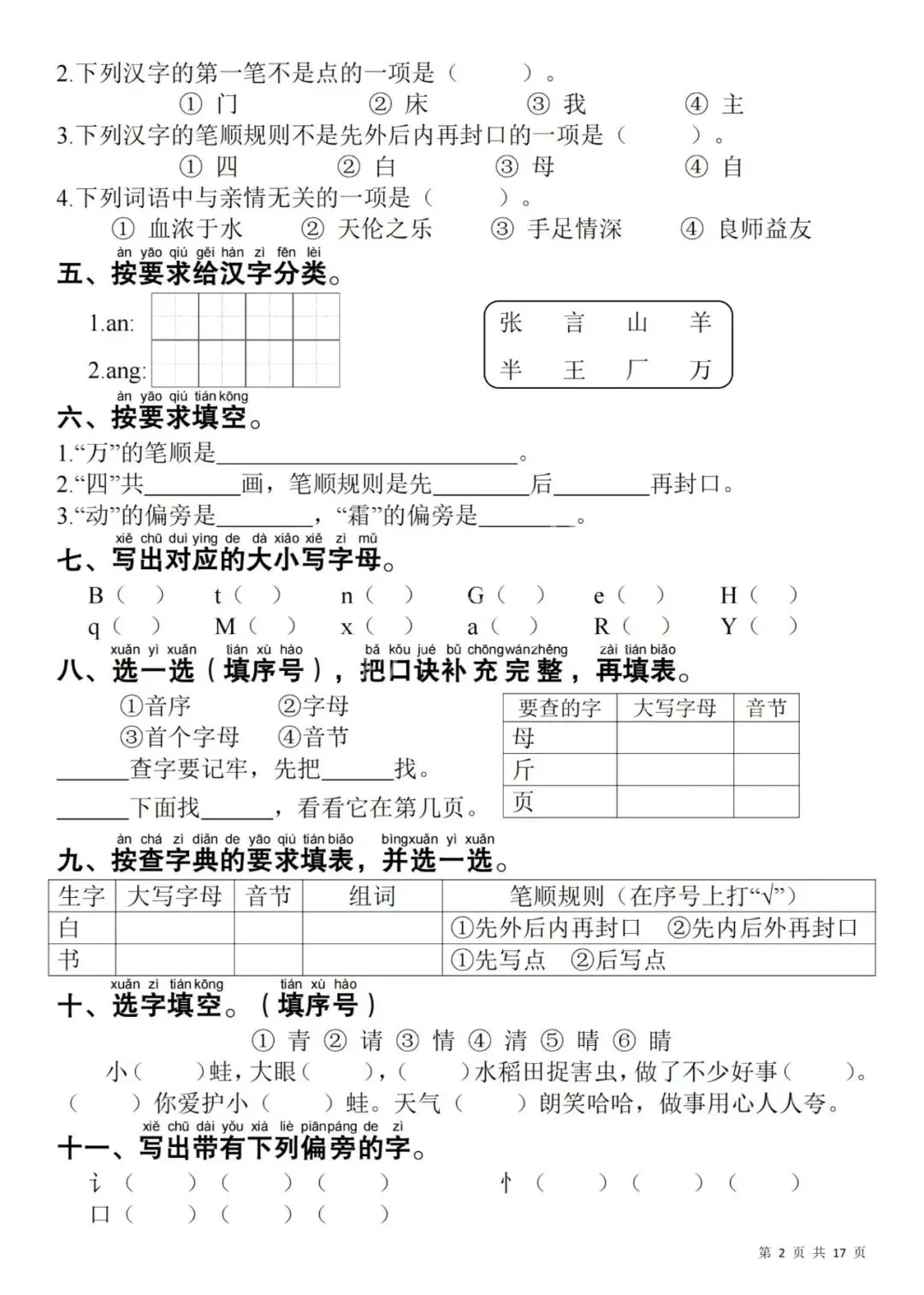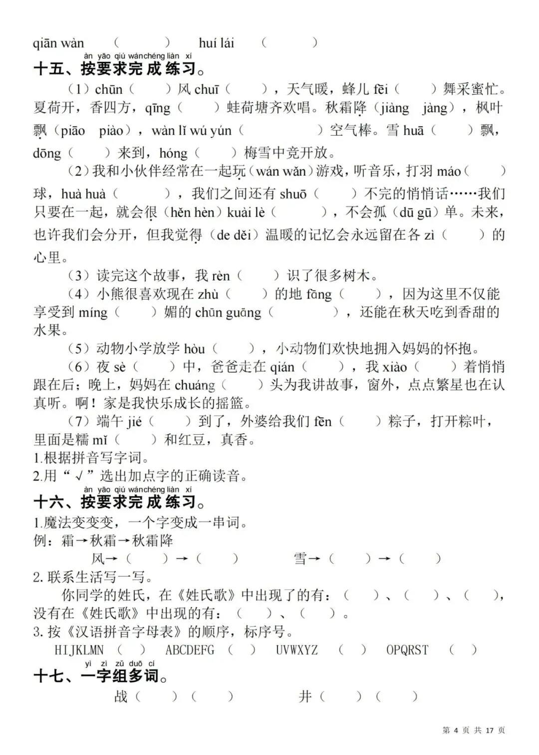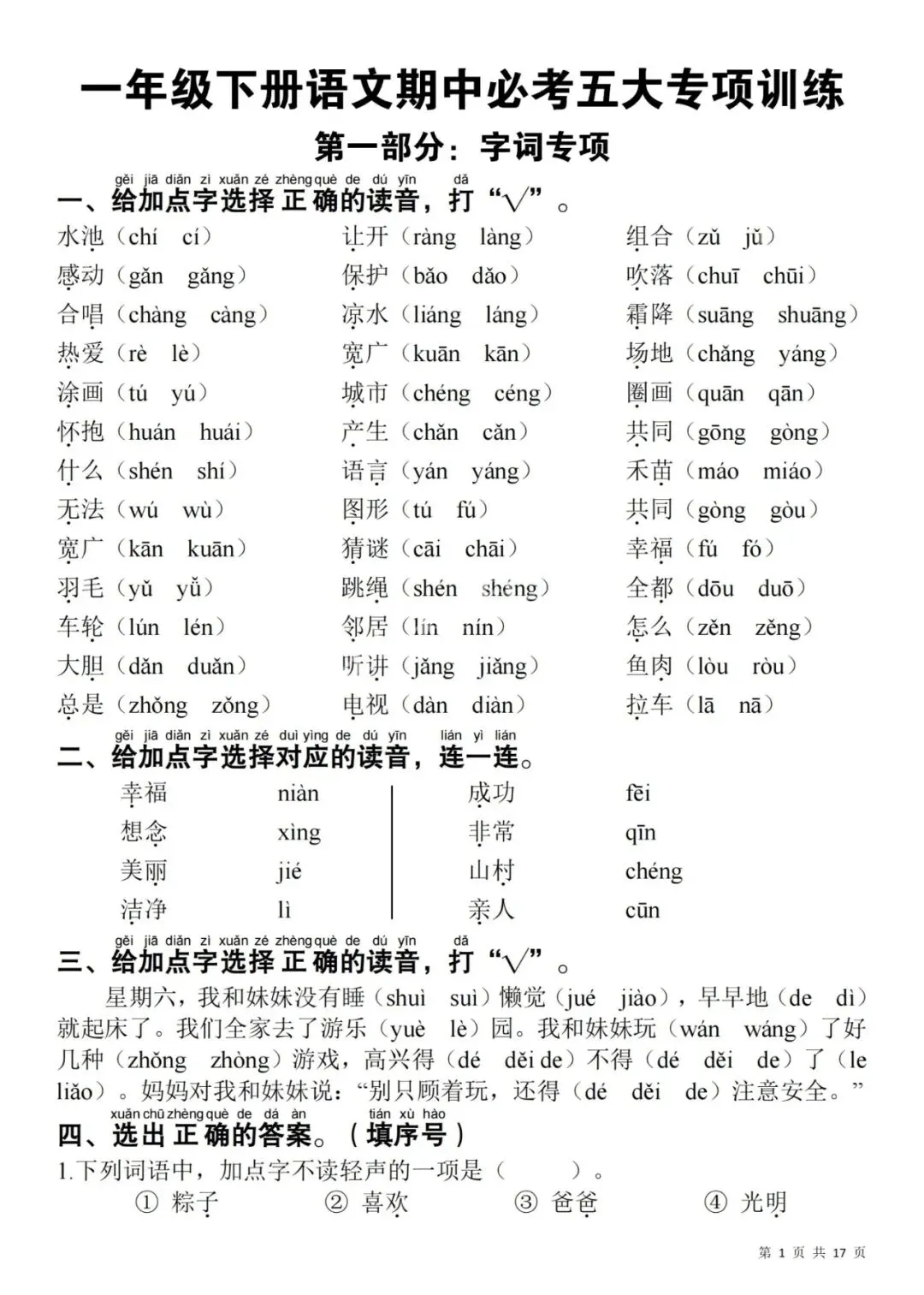 一年级下册语文期中必考五大专项训练(电子版可打印)