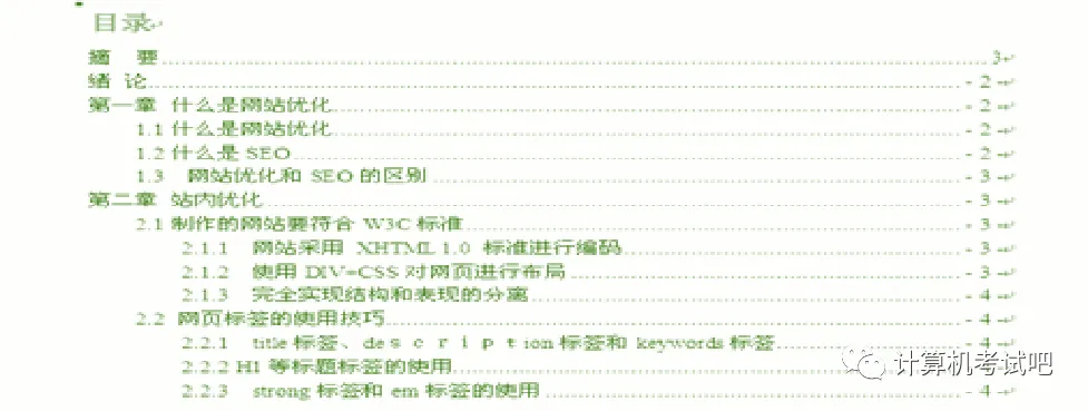 目录通常是长篇幅文档不可缺少的一项内容,它列出了文档中的各级标题及其所在的页码,便于文档阅读者快速查找到所需内容。
