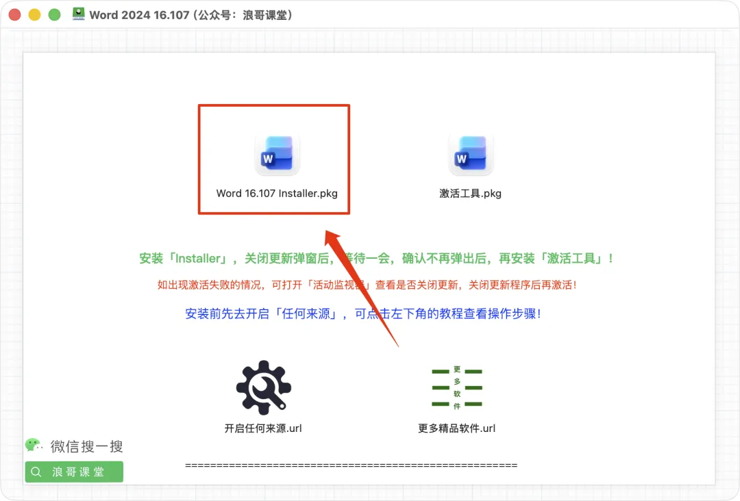 | 4、然后双击「word 16.107 installer.pkg」开始软件安装; |