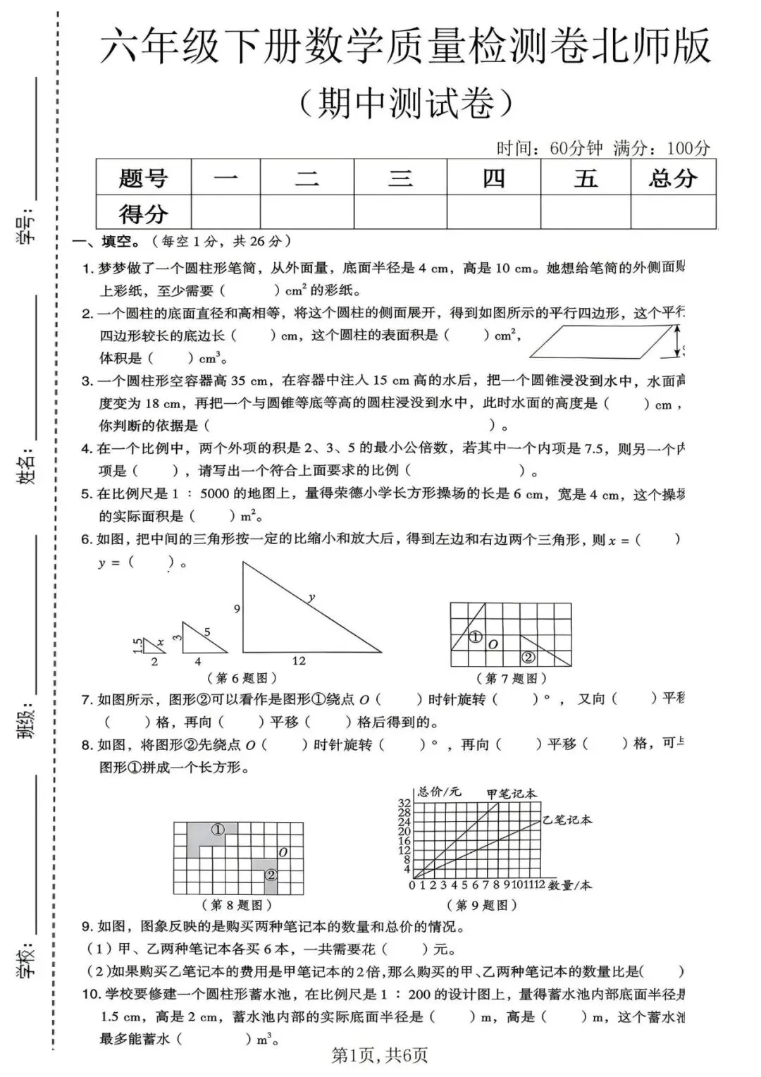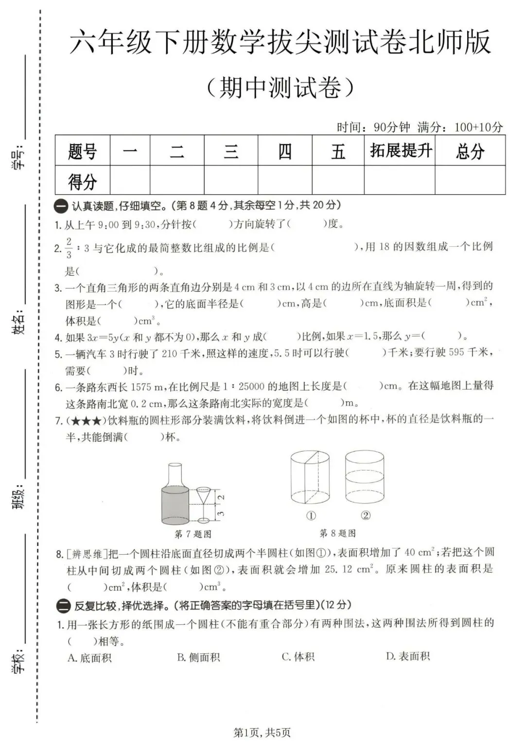 2025-2026学年春(北师大版)六年级下册数学《期中检测试卷》(拔尖卷、质量卷、综合卷共14套,附答案)完整可下载打印!