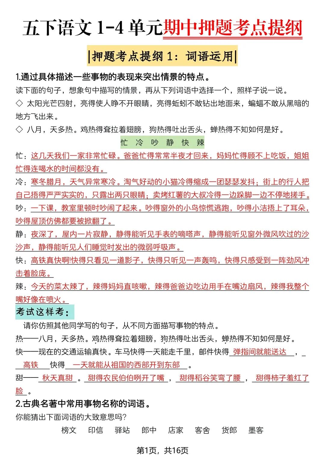 为了帮助孩子查缺补漏,巩固基础,老师特意为大家整理了一份——26春五年级下册人教部编版语文《期中复习重点押题专项练习》(附答案)高清电子版可打印。