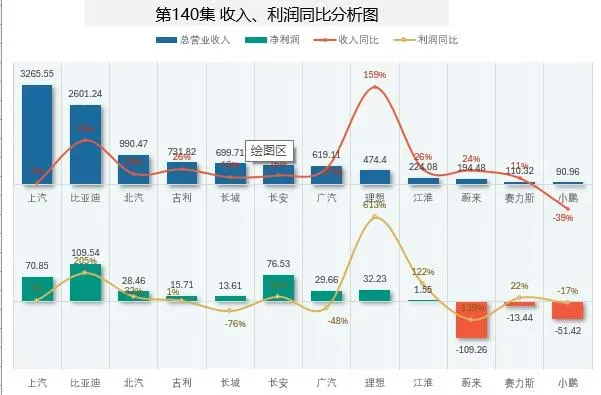 可以同时显示收入、利润及同比折线