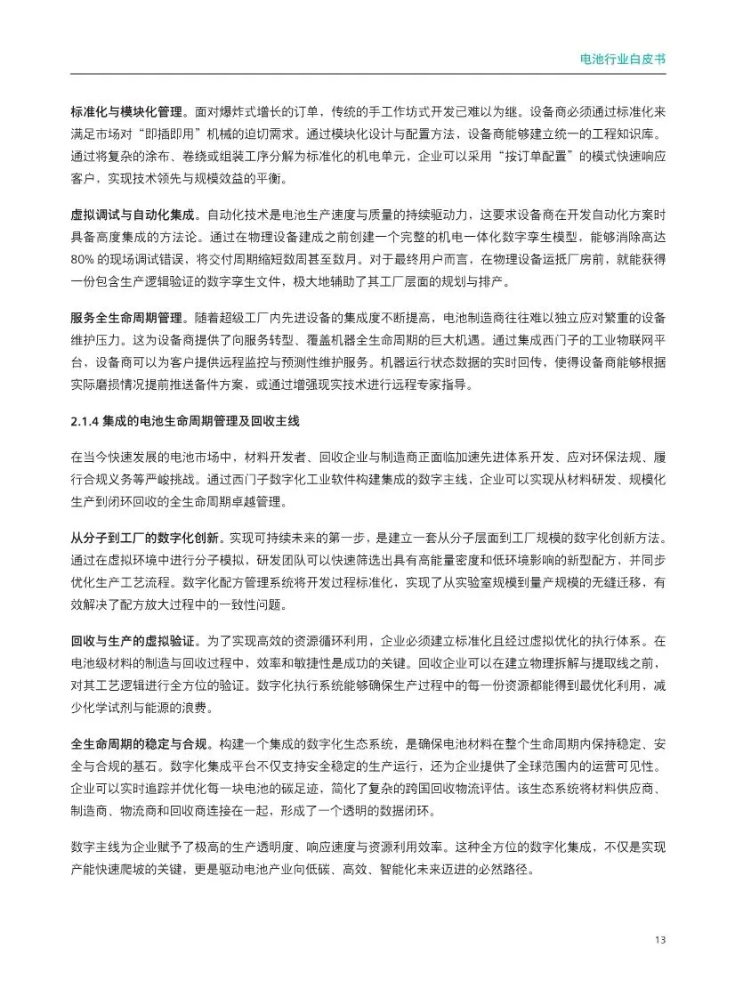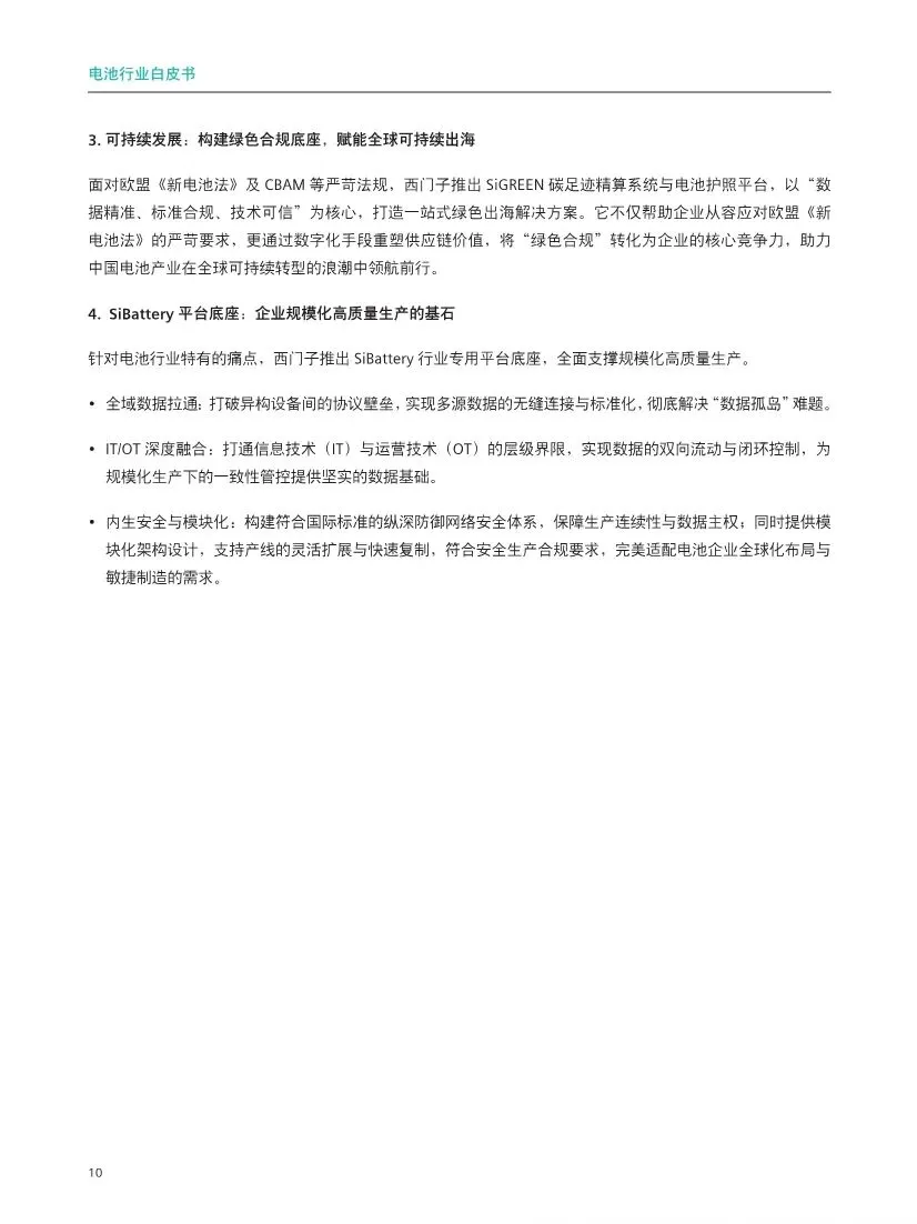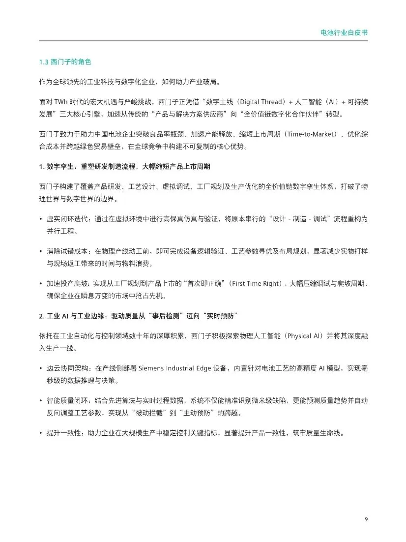 总结而言,这份白皮书不仅是西门子的解决方案手册,更是对中国电池产业迈向TWh时代高质量发展的一份战略路线图。它清晰地指出,未来的竞争是 “数字化深度” 与 “全球化运营能力” 的竞争。中国电池企业必须超越“硬产能”的扩张,在“软实力”——即通过数字化与智能化实现极致制造、通过绿色合规构建全球市场通行证、通过全生命周期管理创造循环价值——上构筑新的、更坚固的护城河。唯有完成这场深刻的制造范式与商业逻辑升级,才能在全球新能源产业的巅峰对决中,赢得未来。
