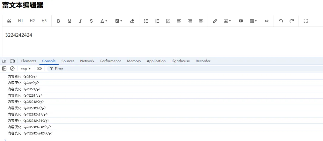 // 内容变化时触发editor.on('change', () => { console.log('内容变化', editor.getHtml())})