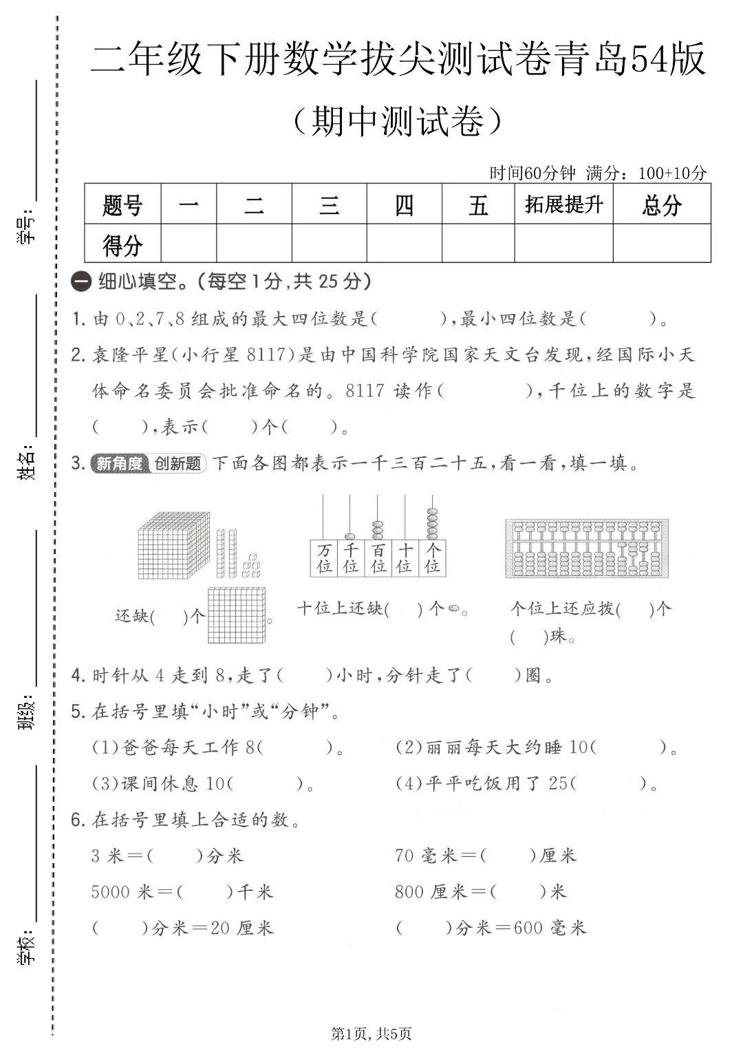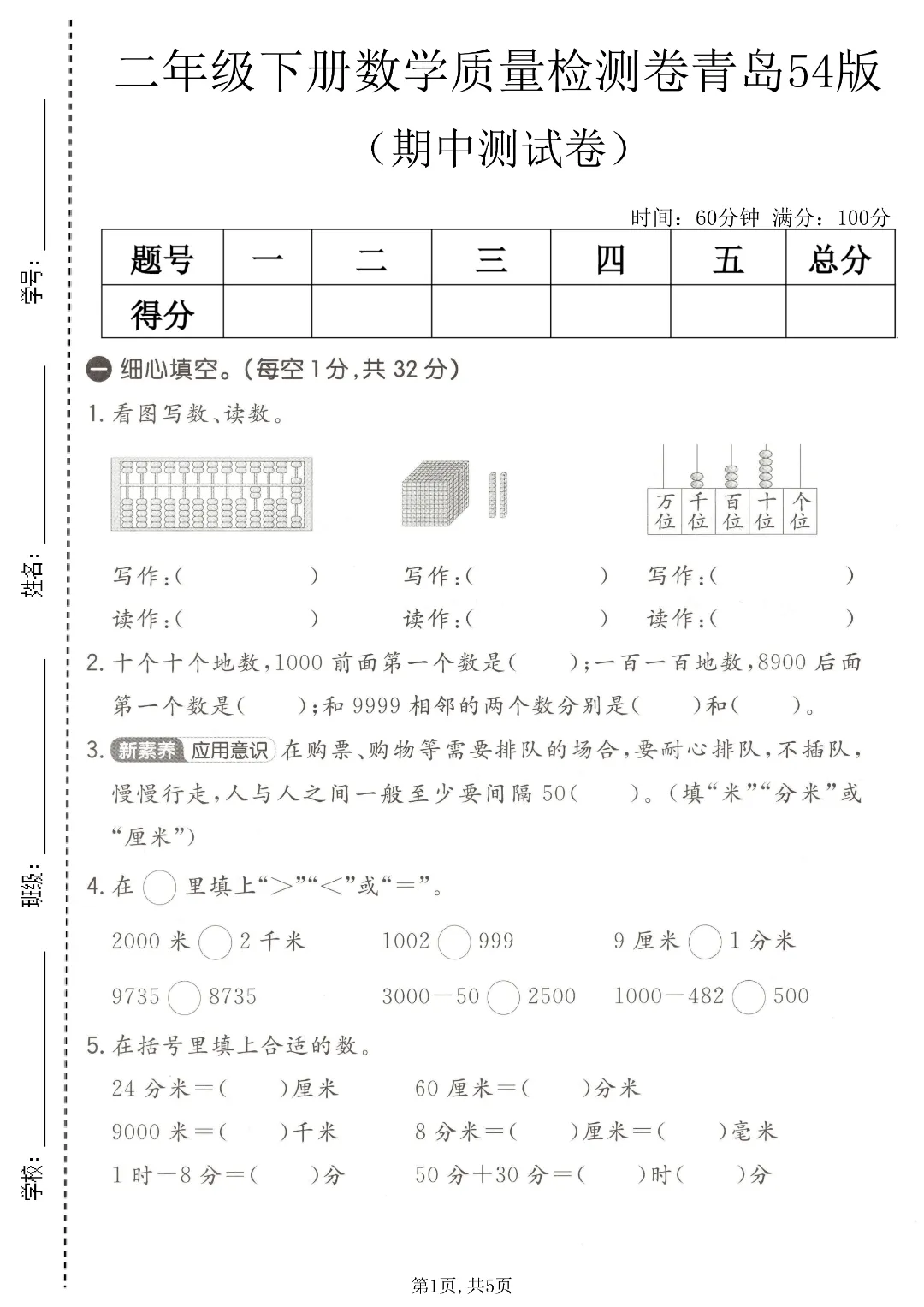 ✨今日给家长朋友们分享的是:26年春新二年级下册青岛54版数学《期中考试质量检测卷3套》附答案解析 电子版可打印