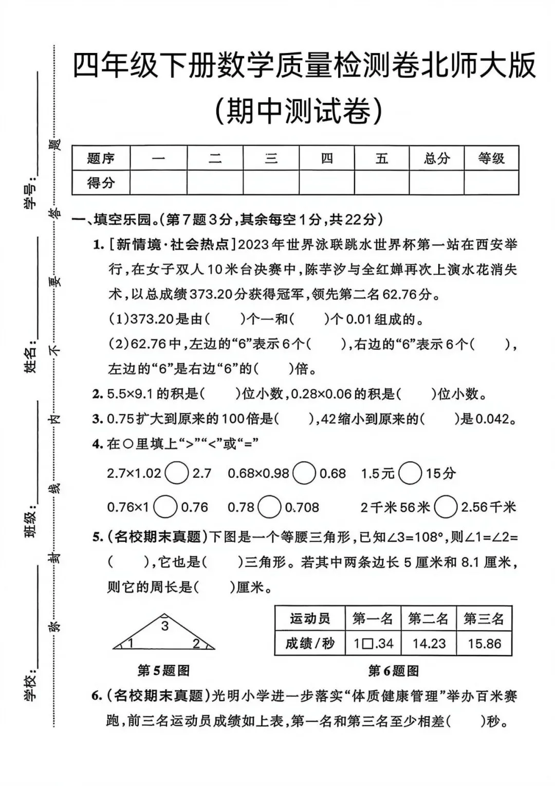 大家好,我是小敏妈妈,今天为大家分享的是;26春最新北师大版四年级下册数学《期中测试卷+摸底测试+质量检测+名校真题》共5套!附答案!高清电子版可打印,含word可编辑