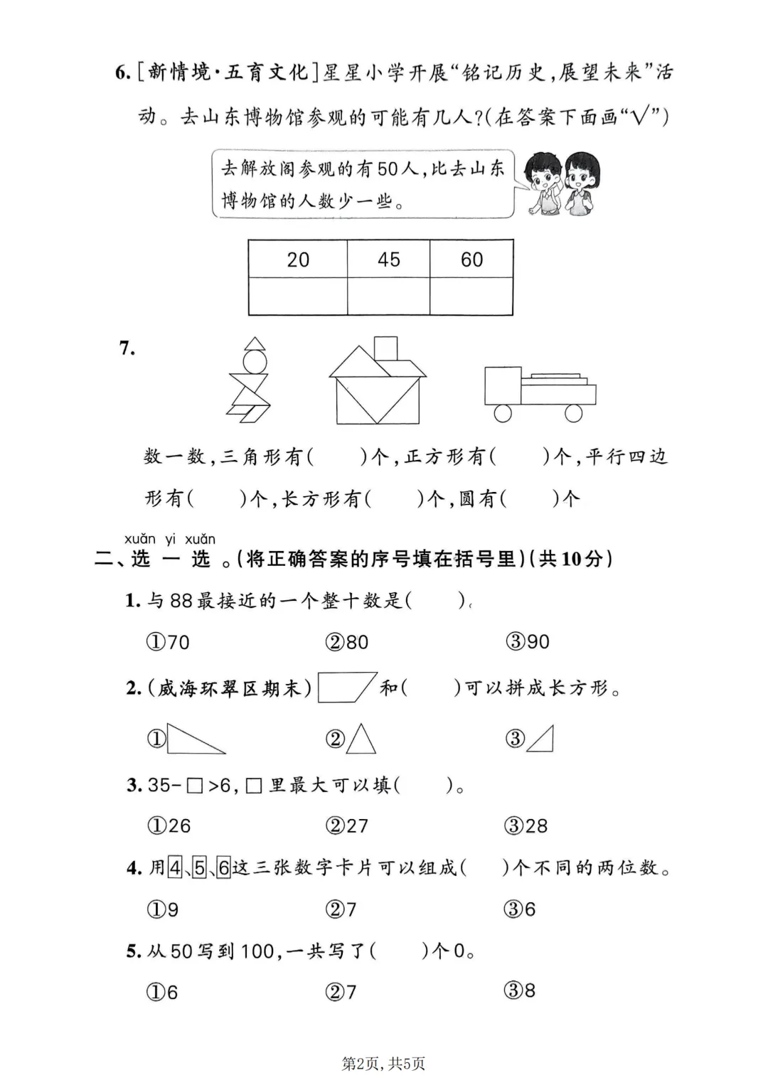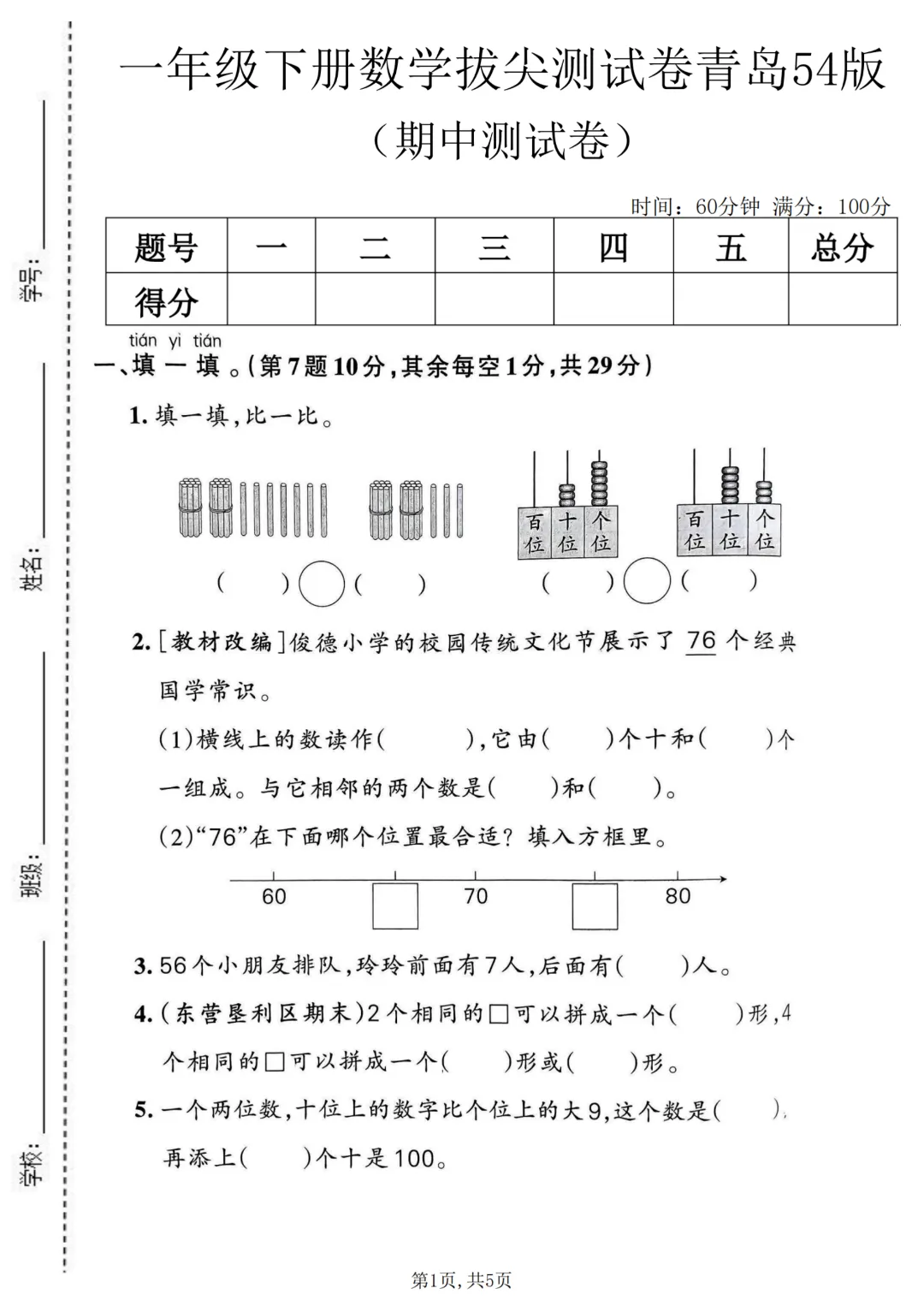 ✨今日给家长朋友们分享的是:2026年春新一年级下册青岛54版数学《期中考试拔尖测试卷6套》附答案解析 电子版可打印