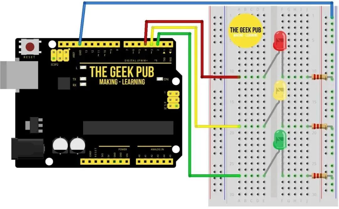 digitalWrite(yellowPin, HIGH); delay(2000); digitalWrite(yellowPin, LOW);