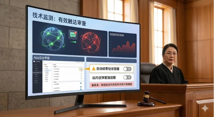 在“谢某诉某视讯公司案”中,谢某购买了具有价格优惠的连续包年会员。次年展期前,平台仅发送了隐蔽且无强制弹窗的站内信。同日,平台向谢某发送提示短信失败。在明知短信未送达的情况下,平台未再作任何补充提醒,并按期自动扣除了全年费用。