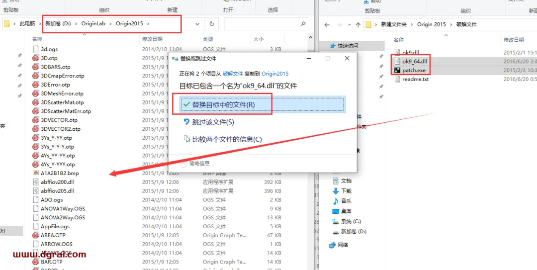 19、将学习文件里面的学习补丁ok9_64.dll或ok9.dll,ok9_64.dll和ok9.dll是根据自己的电脑系统选择的,如果你电脑系统是64位的就复制ok9_64.dll,如果是32位就复制ok9.dll。同时将注册机复制到刚才打开的安装位置下替换