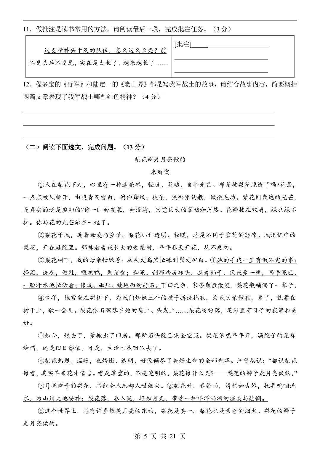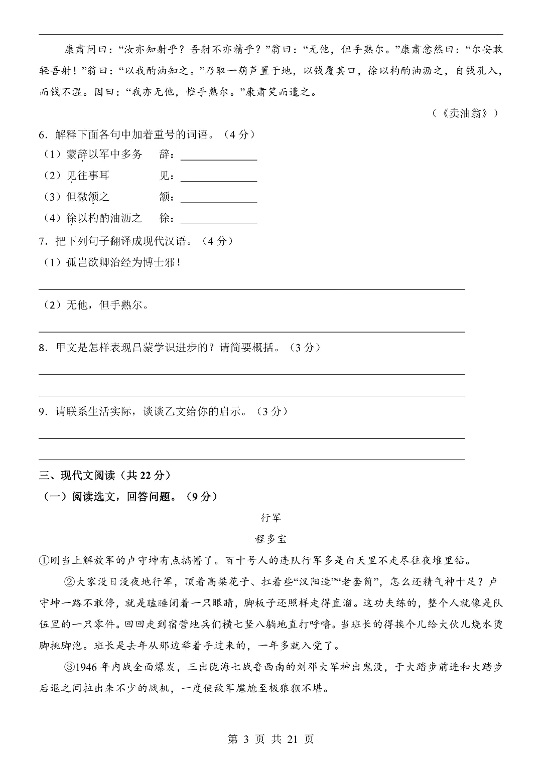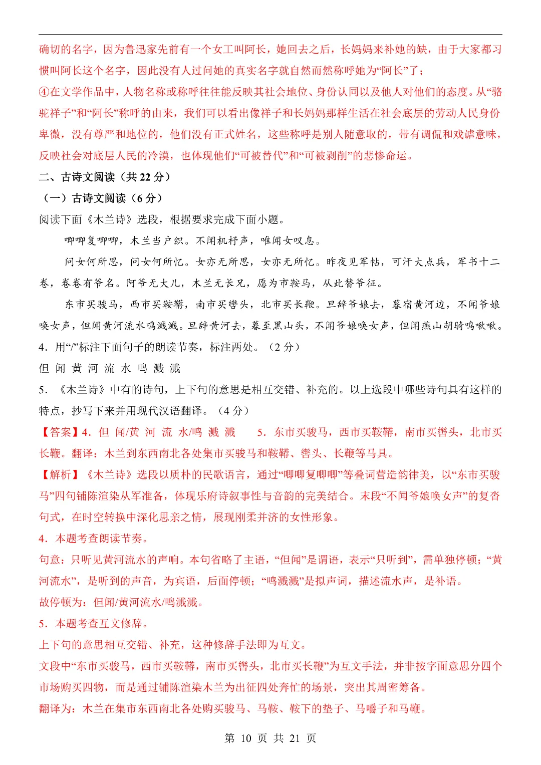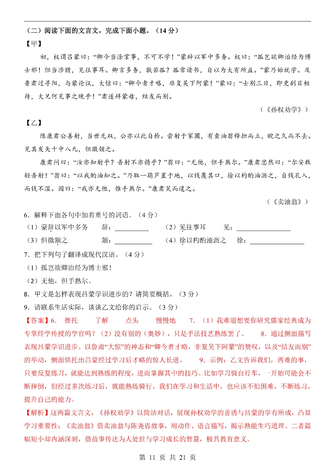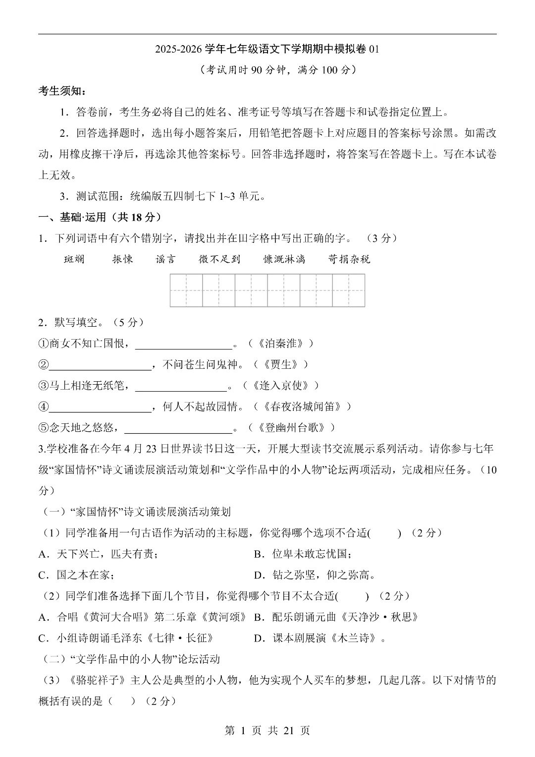 25-26年春新七年级下册统编版54制语文《期中考试模拟检测卷2套》附答案解析 可打印