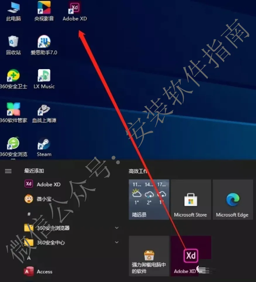 7.点击左下角的微软图标找到对应的软件固定到开始屏幕