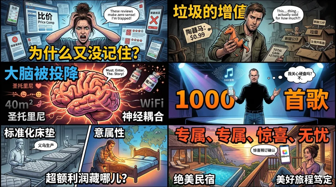 他做了一个动作:找来一帮作家,给每一个垃圾编造了一个虚构的、但充满情绪的故事。那个99美分的陶瓷马不再是陶瓷马,它是父亲酗酒后砸毁的家庭记忆。结果呢?这些垃圾在易贝上被疯抢,那个99美分的陶瓷马真的卖了62.95美元。那堆总成本128美元的废品,最终成交总价是3612.51美元,增值率高达2700%。