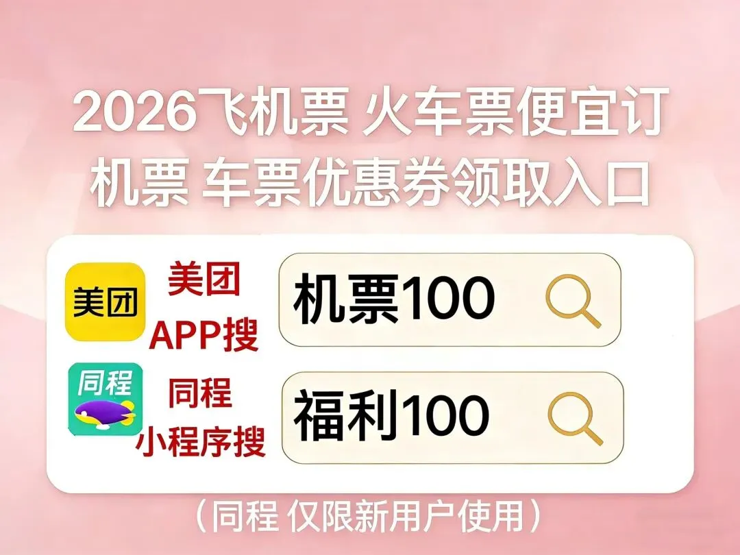 • 核心策略:固定平台积累权益+提前7-15天订票+非高峰时段出行+差旅权益,叠加美团APP搜【机票100】领取机票券。