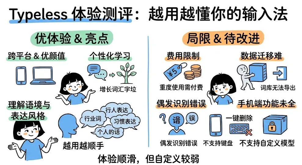所以 Typeless 的优点很明显,问题也很清楚。它属于那种体验很顺,自定义这一块弱点。