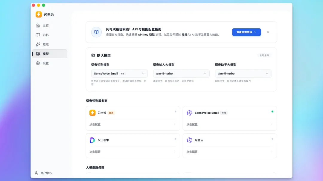比如你自己本来就买了很多模型额度,或者有些 Coding Plan 根本用不完,那直接接进闪电说里,就能把已有资源利用起来,不需要额外增加太多成本。