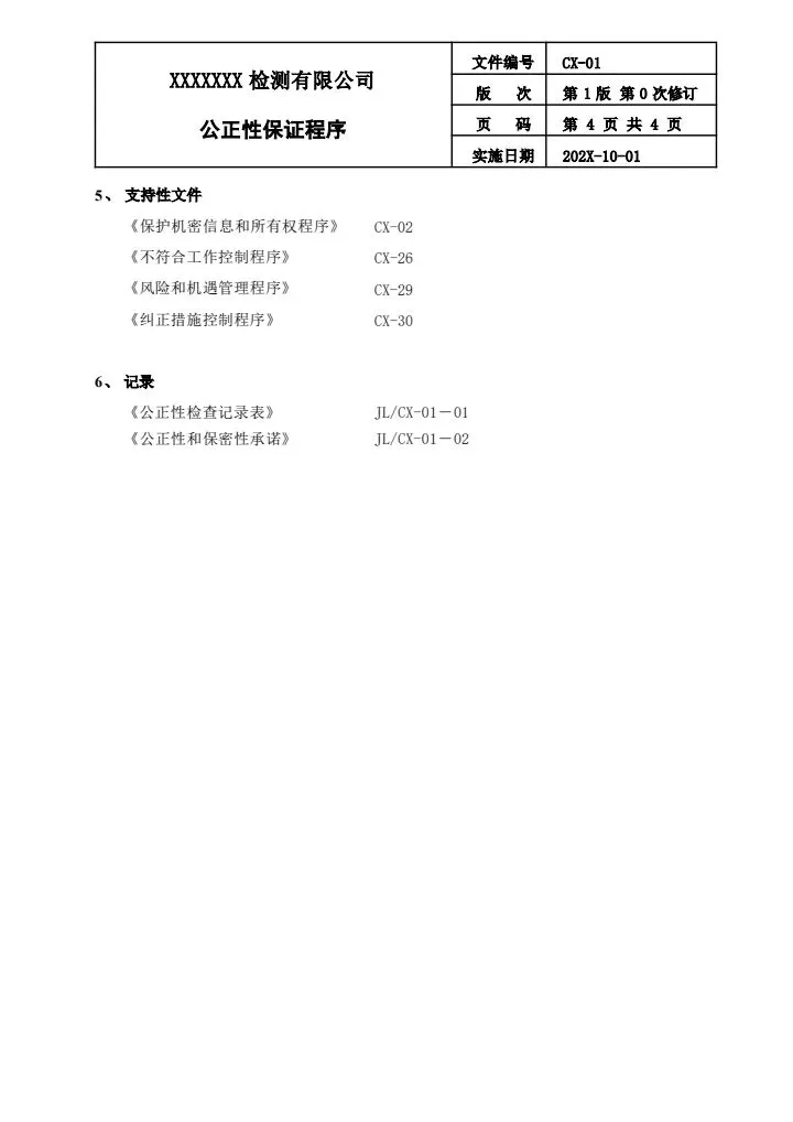 1 CX-01 第 1 版 第 0 次修订 公正性保证程序