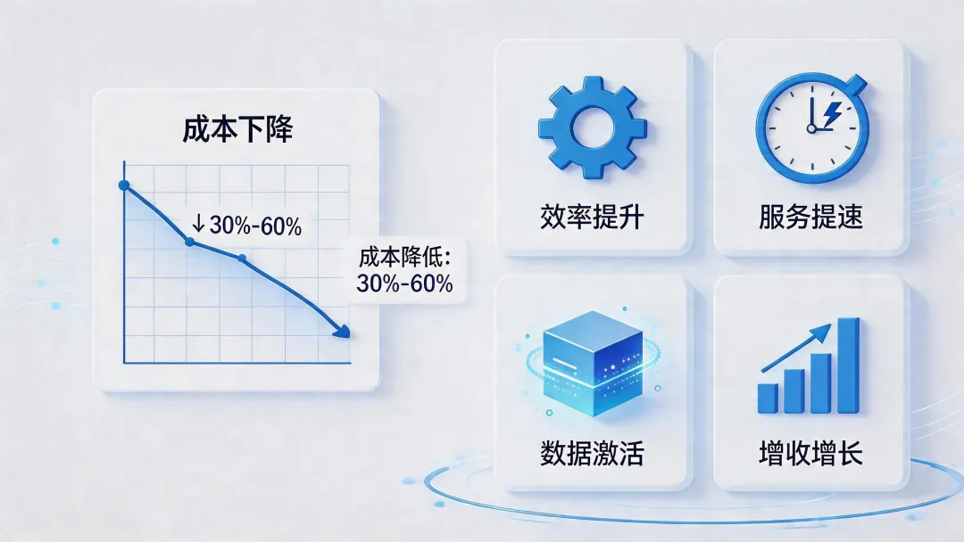 在国家“AI+”行动推动下,大模型、智能体、服务机器人成本快速下降,AI已从前沿概念变为普惠生产力工具。当前人力成本持续上涨,客服、外呼、回访、导览、办公等重复性工作消耗大量人力;客户对秒级响应、7×24小时服务、个性化体验要求越来越高,传统模式难以支撑。同时,企业大量数据沉睡系统,无法转化为经营决策依据。而率先落地AI的同行,已实现服务响应提速、转化率提升、人力成本降低30%–60%。