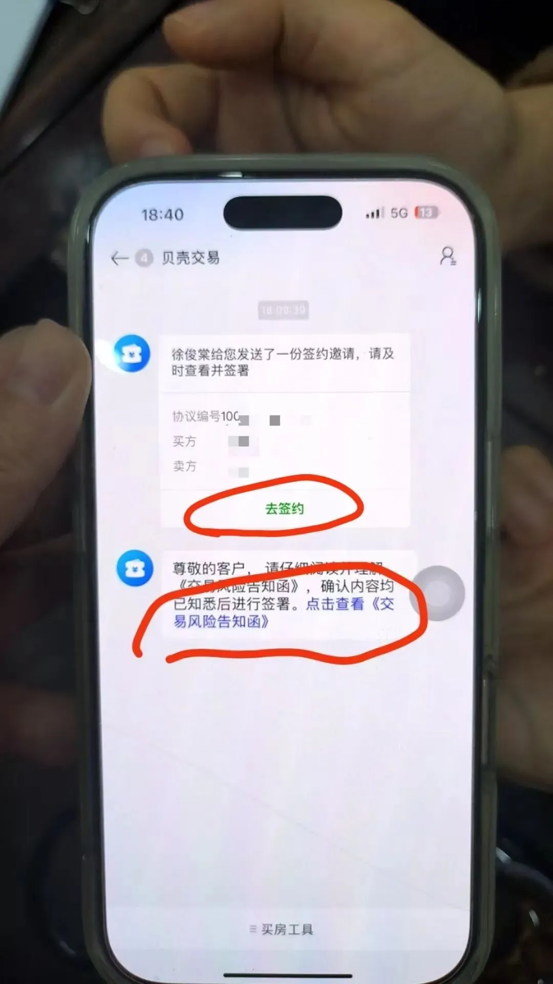 签约路径:贝壳找房APP-消息-贝壳交易-去签约