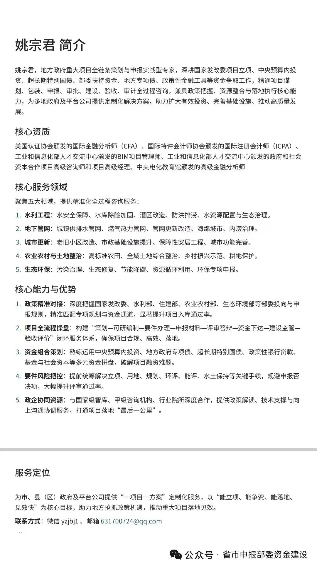 结合国内基建、产业升级、民生工程、低碳科创、海外落地等各类项目投融资落地逻辑,完整梳理标准化项目资金拼盘体系。本资金拼盘适用于绝大多数政府立项项目、市场化产业项目、城市更新、园区建设、新能源、基础设施改造等项目,由上海宗君投资管理有限公司统筹操盘、组合落地,实现项目资金闭环、降低自筹资金压力、提升项目落地成功率。