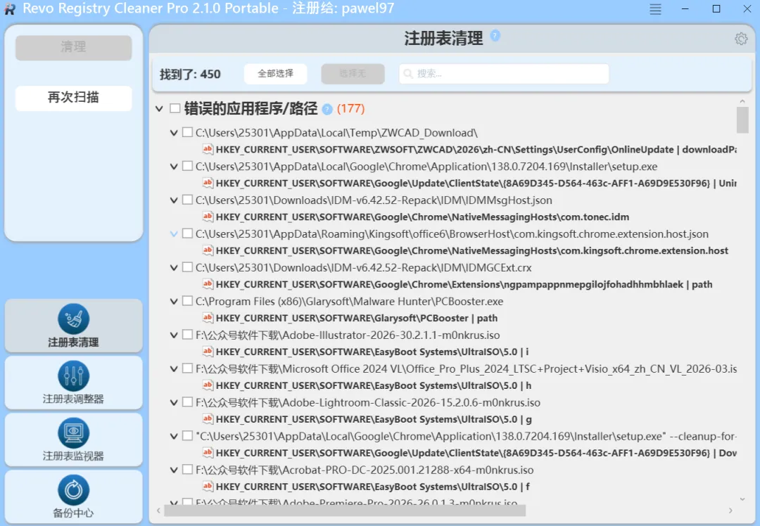 最新版:Revo Registry Cleaner Pro(清理优化注册表) v2.1.2 多语便携版