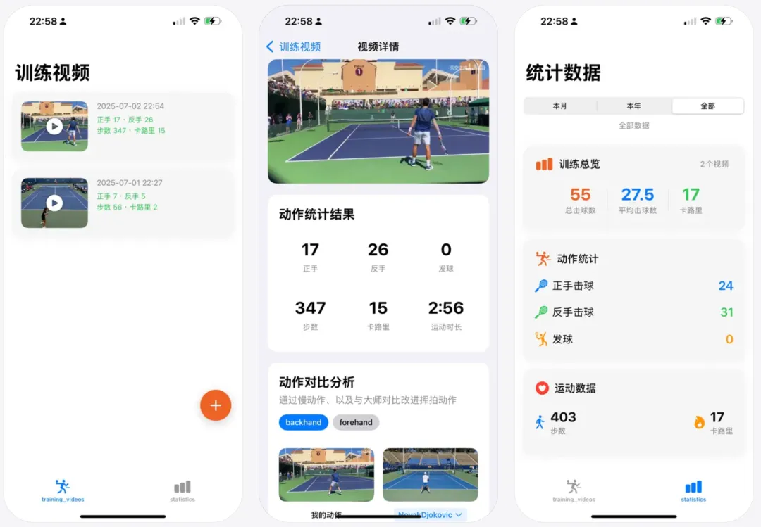 简介:一款网球 AI训练分析应用,用视觉技术帮助你看清每一次正手、反手与发球,并与大师示范对照,让训练复盘更高效