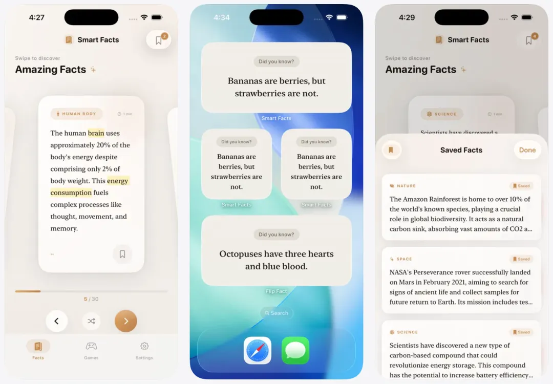 简介:每天轻松学点新知识,提供AI生成与人工精选的趣味短事实,涵盖科学、历史、心理等领域,支持每日推送和精美桌面小组件,还能通过“配对挑战”等互动小游戏边学边玩,所有内容简洁有趣,助你保持好奇、快乐涨知识。