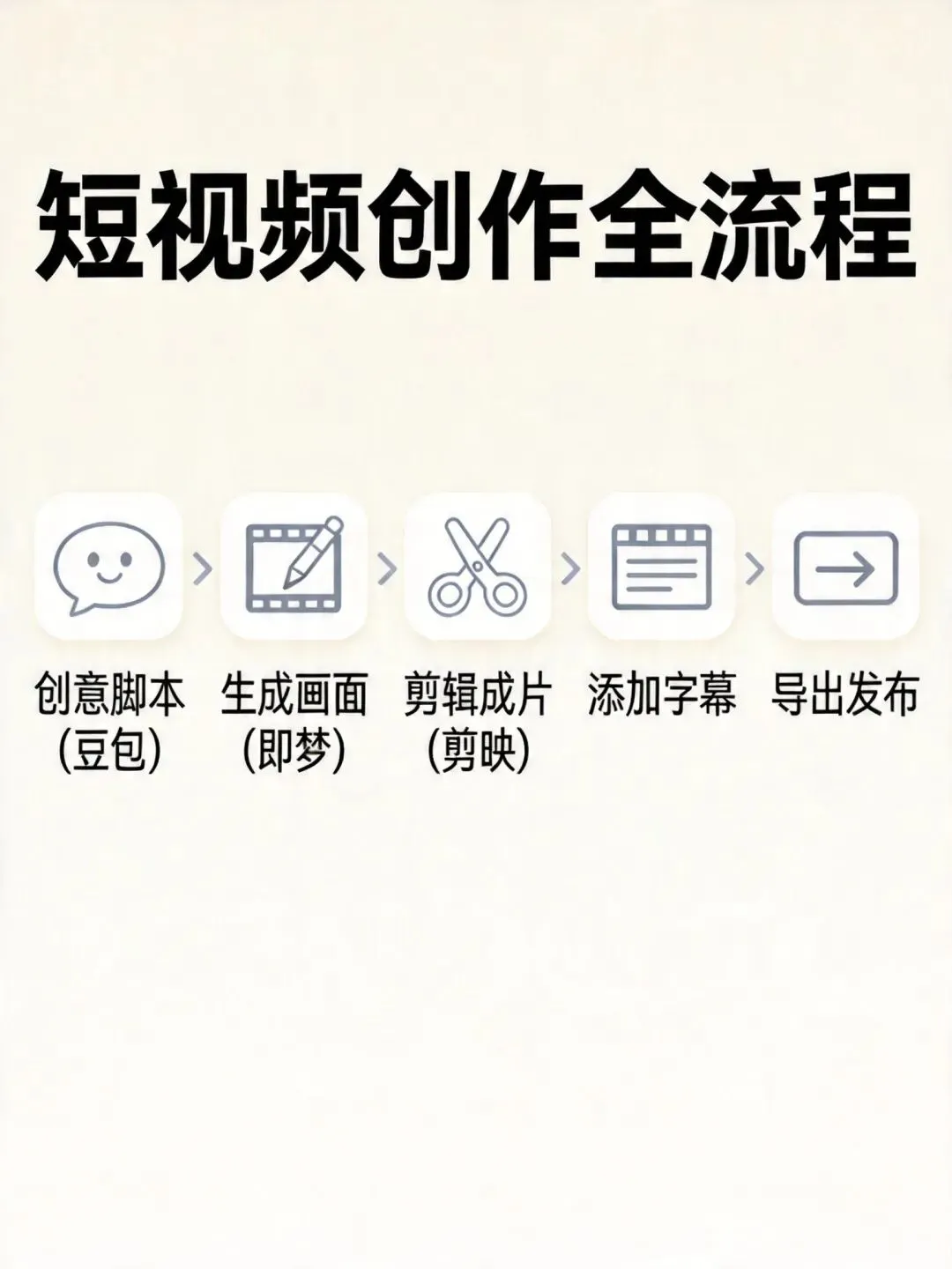 今天要说的这套组合,是2026年目前最实用的一套流程:豆包出创意和脚本,即梦生成视频画面,剪映完成精剪成片。