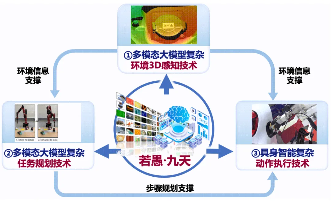 以若愚·九天多模态大模型为核心,企业创新打通具身感知、智能规划、精准执行全技术链路,攻克开放世界感知、长序任务规划、复杂动作执行三大行业难题,形成了完整的机器人大脑产品体系。